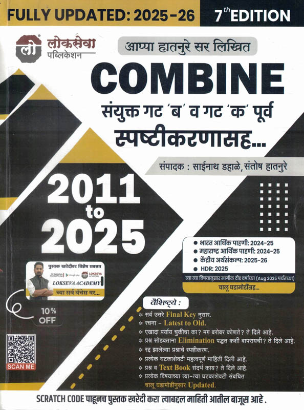 “Combine गट ‘ब’ व ‘क’ 2024-25 6th edition या पुस्तकाला तुम्ही दिलेल्या उत्तुंग प्रतिसादाबद्दल मी तुम्हा सर्वांचा खुप आभारी आहे. मागील Combine-B C च्या पेपरमध्ये या पुस्तकातील 44-46 प्रश्नांचा (70 पैकी) संदर्भ सापडतो. विद्यार्थ्यांचं असंही म्हणणं आलं की, सर तुमच्या पुस्तकामुळेच मी आज PSI-Mains / STI-Mains ला/ ASO Mains ला/दोन्ही/तिन्ही तसेच ESI/Tax. Asst. / Clerk मुख्यला पात्र ठरलो आहे; पण मित्रांनो, तुम्ही कोणामुळेच नाही तर तुमच्या स्वतःच्या मेहनतीमुळे पास झाला आहात हे तितकच खरं आहे.
