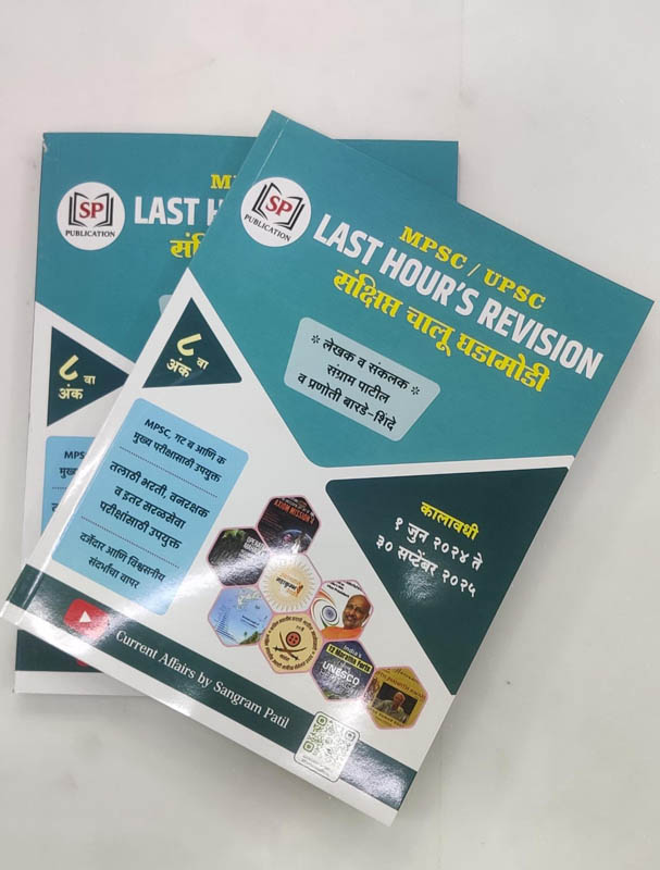 ‘संक्षिप्त चालू घडामोडी’ या PDF चे रुपांतर आपण ‘LAST HOURS REVISION’ (संक्षिप्त चालू घडामोडी) असे केले आहे. हे आपण या पुस्तकाच्या माध्यमातून चालू घडामोडींसारख्या अत्यंत किचकट समजला जाणारा विषय विद्यार्थ्यांना अत्यंत सोप्या आणि मुद्देसुद परीक्षाभिमुख पद्धतीने मांडणी केली आहे. विद्यार्थ्यांना कमीत कमी वेळेत Minimum Efforts, Maximum Output मिळवून देण्यासाठी आम्ही प्रयत्न केला आहे.